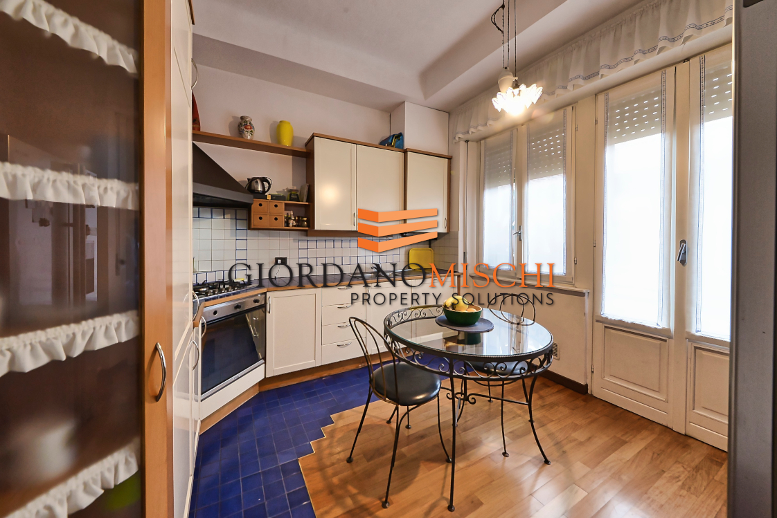 Dall’ingresso dell’appartamento si accede alla zona giorno che si apre su un ampio e luminoso doppio soggiorno, dotato di balcone esposto a est con affaccio su via Martiri della Libertà, una cucina abitabile, anch’essa con accesso allo stesso balcone e una camera, attualmente adibita a zona studio/smart working, con suo bagno di servizio, utilizzato come lavanderia.