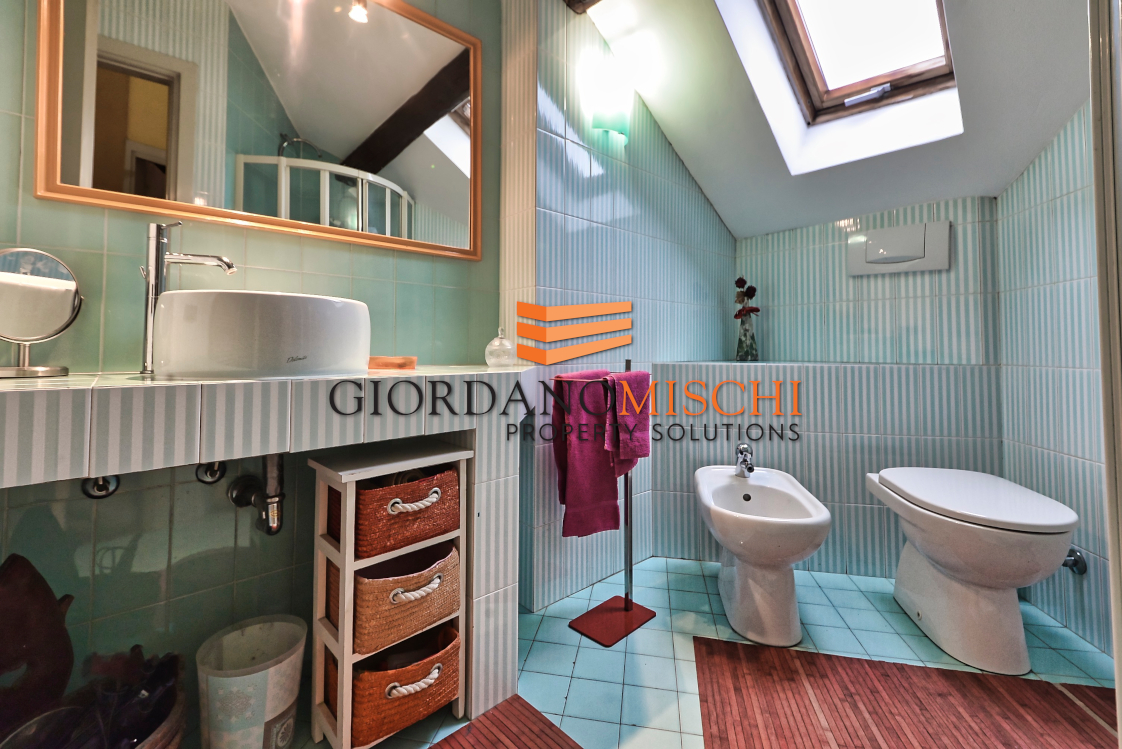 Su tutto l’appartamento è posato il parquet ad eccezione dei bagni e della cucina e l’immobile è dotato di impianto di aria condizionata con sistema inverter caldo/freddo al piano superiore.