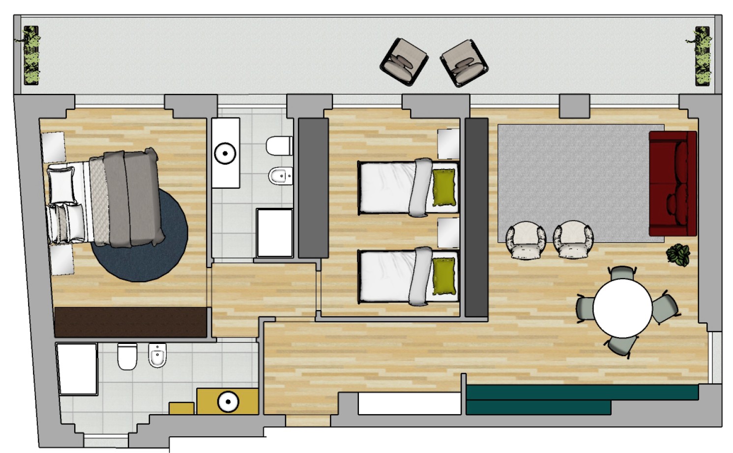 Proposta tre locali con doppi servizi (appartamento 3H)