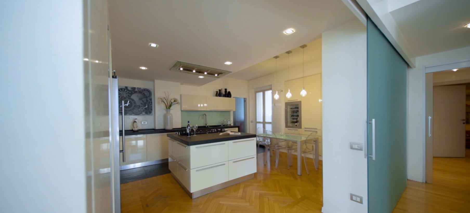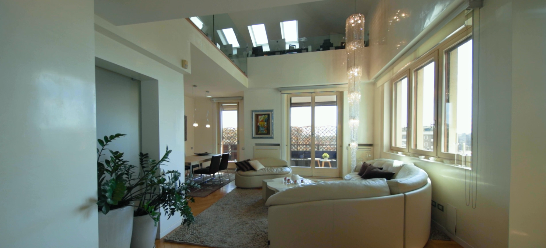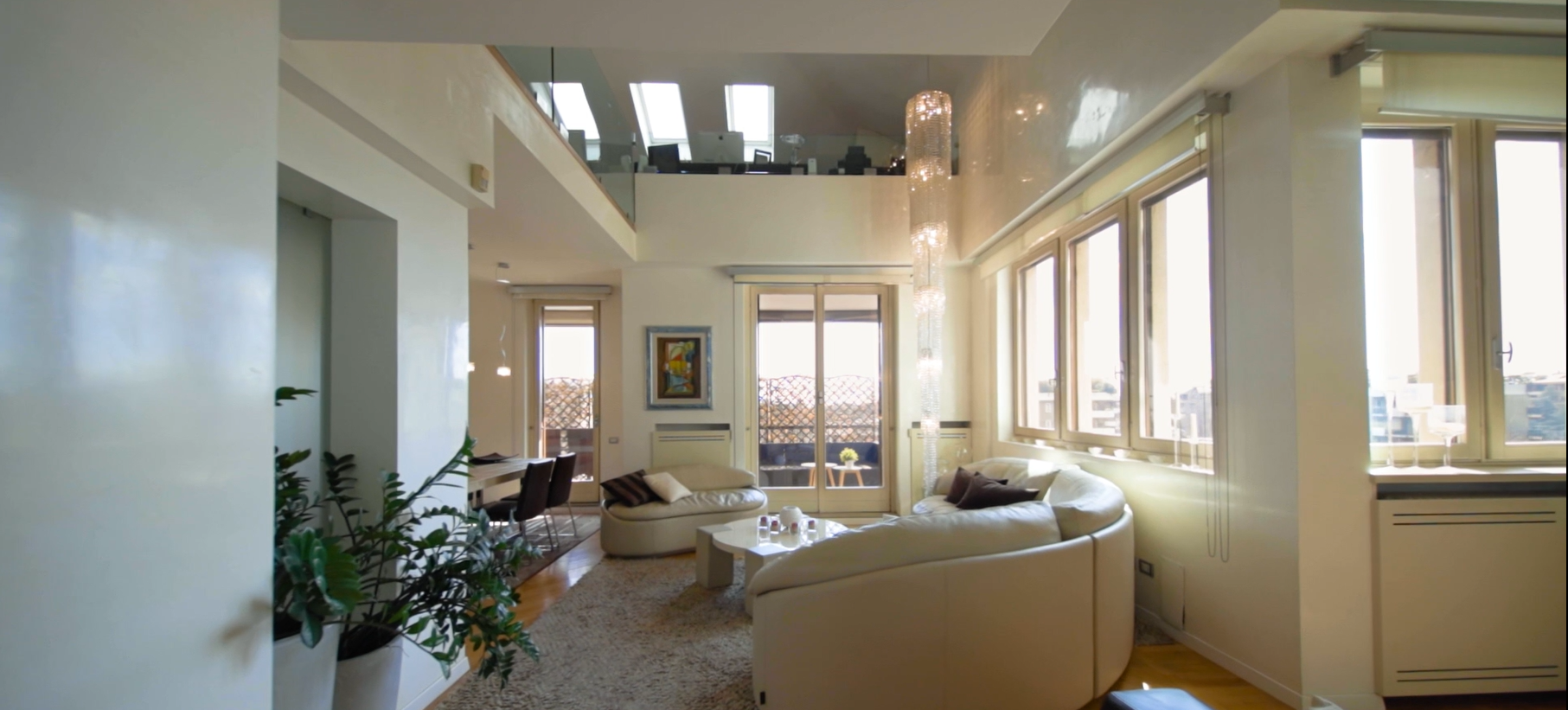 Varcando la soglia di questo splendido appartamento, si viene immediatamente avvolti da una straordinaria sensazione di ampiezza e luminosità. Il cuore della proprietà è lo scenografico salone a doppia altezza, dove un raffinatissimo lampadario a cascata definisce l’identità sofisticata dell’ambiente. La zona giorno comprende anche un angolo dining, perfetto per serate con gli amici o cene in famiglia. Ogni dettaglio architettonico degli spazi dialoga costantemente con la luce naturale che inonda il pregiato parquet attraverso le ampie vetrate, creando un’atmosfera calda e ariosa in qualsiasi momento della giornata.